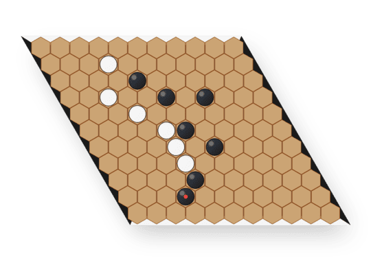To win, connect your two opposite sides with an unbroken chain of your stones. Since the board has no draws, every game ends with a winner.