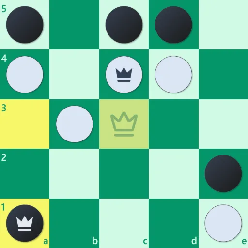 キングズバレーは5×5の盤で行う、素早く戦術的なレースゲームです。王を中央の谷マスに到達させるか、相手を合法手なしにして勝利します。